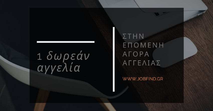 Προσπαθώντας να συμβάλουμε - με τα μέσα που διαθέτουμε - στην προσπάθεια όλων εσάς, που εμπιστεύεστε το Jobfind για την εύρεση του προσωπικού σας, θα θέλαμε να σας ενημερώσουμε πως από σήμερα, Δευτέρα 6 Απριλίου έως και τις 30 Απριλίου 2020, με κάθε αγορά αγγελίας ή ενός πακέτου αγγελιών, θα σας παρέχουμε μία αγγελία δωρεάν, ώστε να τη χρησιμοποιήσετε για μελλοντικές ανάγκες της εταιρείας σας.
