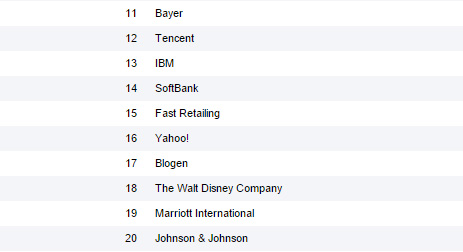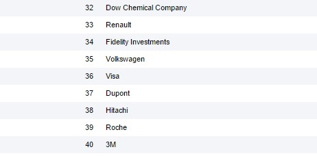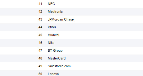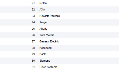 Τις τρεις πρώτες θέσεις στη λίστα κατέλαβαν και φέτος η Apple, η Google και η Tesla. Φυσικά, αυτό δεν αποτελεί έκπληξη για κανέναν, ωστόσο στην πρώτη δεκάδα βρέθηκαν και πολλές αυτοκινητοβιομηχανίες, όπως η Toyota (έκτη θέση), η BMW (έβδομη θέση) και η Daimler (στη δέκατη θέση). Μια ακόμη έκπληξη είναι το πόσο λίγες κινεζικές εταιρείες κατάφεραν να μπουν στη λίστα. Είναι ενδεικτικό πως δεν υπάρχει ούτε μία στην πρώτη δεκάδα.