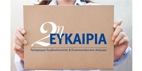 Η «2η Ευκαιρία» είναι ένα πρόγραμμα επανακατάρτισης με διάρκεια 280 ώρες το οποίο απευθύνεται σε 6.000 απολυμένους ή άνεργους των κλάδων λιανικού εμπορίου, εμπορίας, διακίνησης και συντήρησης αυτοκινήτων, κατασκευών – δομικών υλικών. Το πρόγραμμα υλοποιείται από την Ελληνική Εταιρεία Διοίκησης Επιχειρήσεων και οι συμμετέχοντες σε αυτό επιδοτούνται με €5 μεικτά/ώρα.