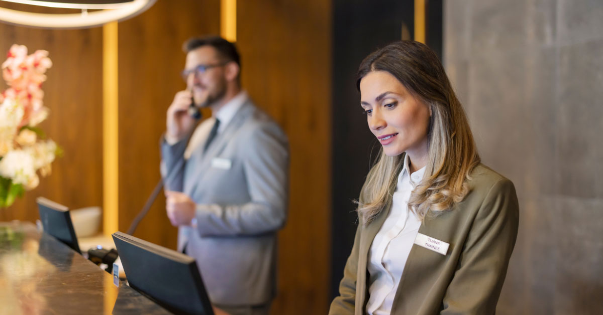 Οι υπάλληλοι υποδοχής καλωσορίζουν τους επισκέπτες και επιβεβαιώνουν την κράτηση τους αναλαμβάνοντας το check-in και το check-out τους. Επιπλέον, παρέχουν πληροφορίες σχετικά με το κατάλυμα και την περιοχή ενώ διαχειρίζονται κι ορισμένα από τα αιτήματα τους.