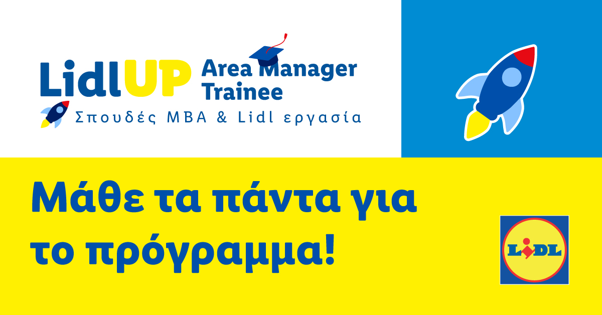 Αναζητάς ένα ουσιαστικό βήμα στην καριέρα αλλά και στην εκπαίδευσή σου; Η Lidl Ελλάς σου δίνει την ευκαιρία να κάνεις ένα δυναμικό ξεκίνημα στο #retail με το πρόγραμμα Trainee Area Manager, που συνδυάζει εξ αποστάσεως MBA και πρακτική εκπαίδευση στην πράξη!